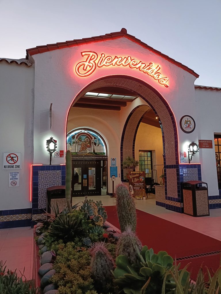 An inscription on the main entrance to the iconic Rosarito Beach Hotel & Spa reads: “Through this door pass the most beautiful women in the world.”
